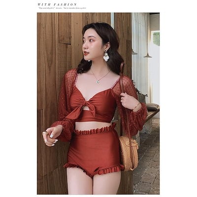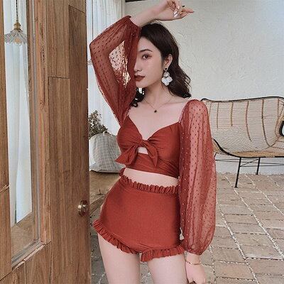 水着レディース 体型カバー 水着2点セット フレアスカート セパレート 三角パンツ 小胸バンドゥビギ