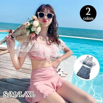 リゾート 大きいサイズ パレオ ビキニ 水着セット バンドゥ 小胸 2点セット レディース 水着 【メガ割】