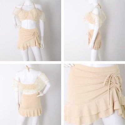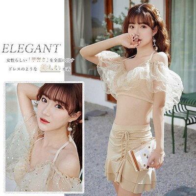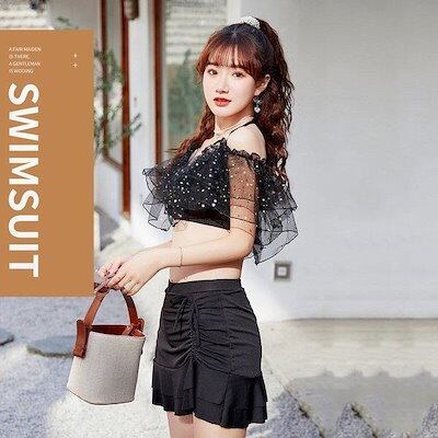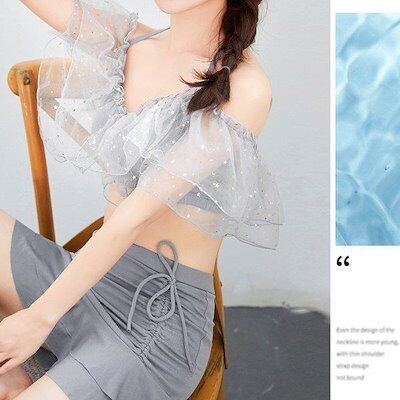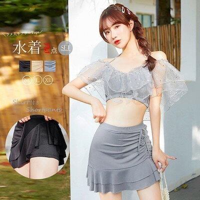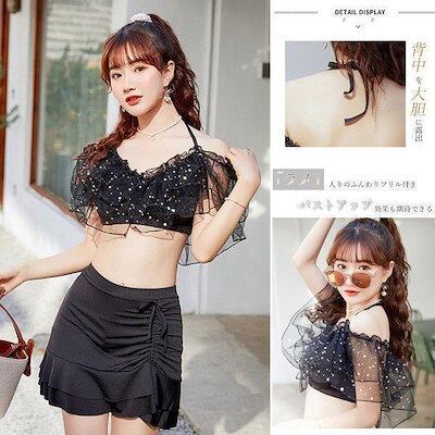 水着セット ホルターネック水着レディース上下セットバンドゥ水着フリルオフショル水着セパレートラメ入り水着ショートパンツ