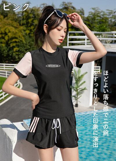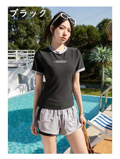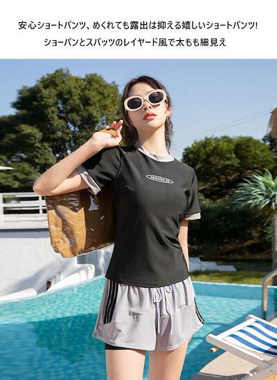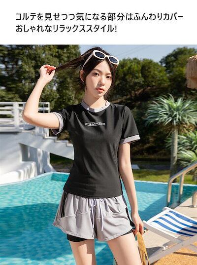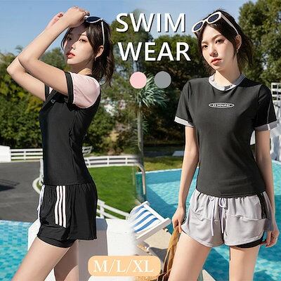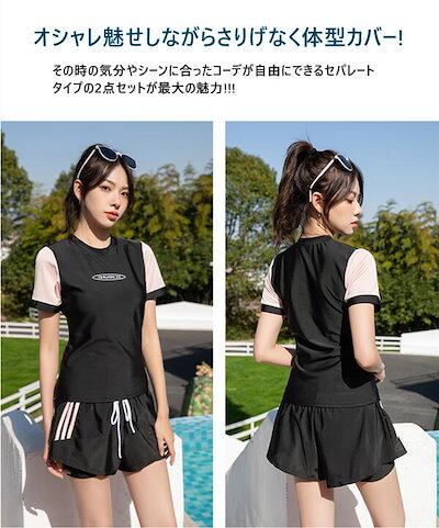 水着 レディース 韓国風 ワンピース 2点セット 2color 夏 日焼け防止 胸パッド付き 体型カバー UVカット中学生 高校生 大学生 ママ水着 小胸 バンドゥ パレオ 海水浴 潜水 可愛い 2