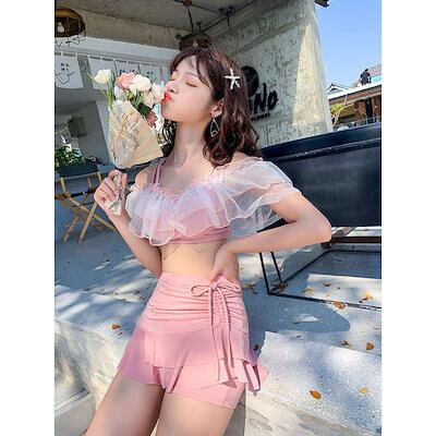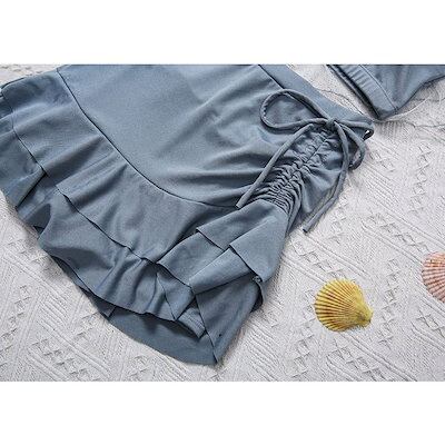 水着 レディース 2点セット 夏 小胸 バンドゥ 水着セット ビキニ パレオ 大きいサイズ リゾート パッド付き 韓国風 体型カバー 日焼け防止 20代 30代 40代 50代