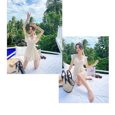 水着 レディース 体型カバー 水着ワンピース型 サロベット水着 小胸バンドゥ オシャレ韓国風 着痩せ スイムウェア ママ水着 学生