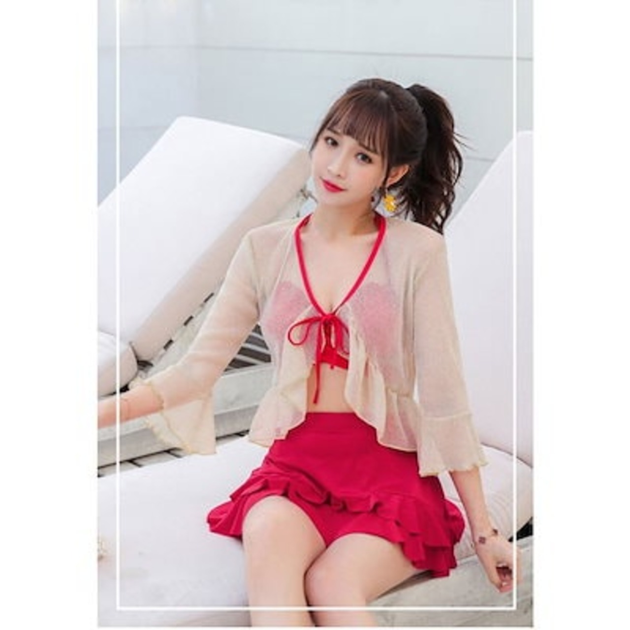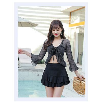 水着 レディース 3点セット 夏 小胸 バンドゥ 水着セット ビキニ パレオ 大きいサイズ リゾート パッド付き 韓国風 体型カバー 日焼け防止 20代 30代 40代 50代