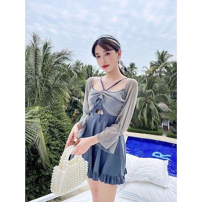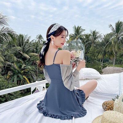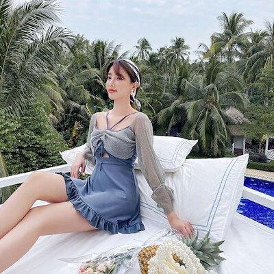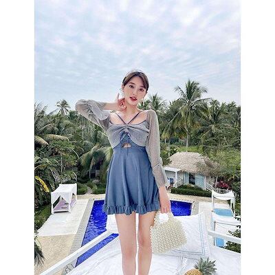 水着 レディース 3点セット 夏 小胸 バンドゥ パレオ リゾート パッド付き 体型カバー UVカット ママ水着 海水浴 潜水 韓国風 可愛い 20代 30代 40代