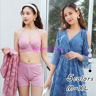 水着 レディース 体型カバー ビキニ 3点セット 花柄 ショットパンツ バストンドゥ 小胸バンドゥ