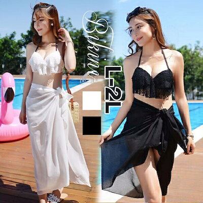 水着 バンドゥ レディース セクシー ビキニ ワイヤー入り レース パレオ付き 3点セット 上下 盛れる スレンダーもピッタリ 大きいサイズ スイミング プール 着やせ ビーチ 盛れる スレンダー【M