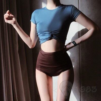 【夏のヒット】ビキニ水着レディース 夏 ビキニ2点セット水着 体型カバー 韓国風 ハイウエスト 半袖 配色水着 小胸バンドゥ セパレート 可愛い スイムウェア 温泉 ママ水着