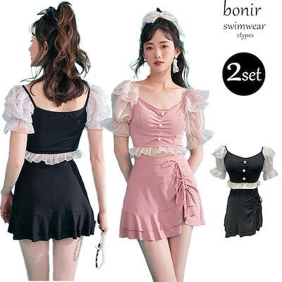 水着 レディース フレア リボン 体型カバー ワンピース かわいい 可愛い ママ 女性 10代 20代 30代 40代 バンドゥ デザイン おしゃれ ミズギ みずぎ レデ
