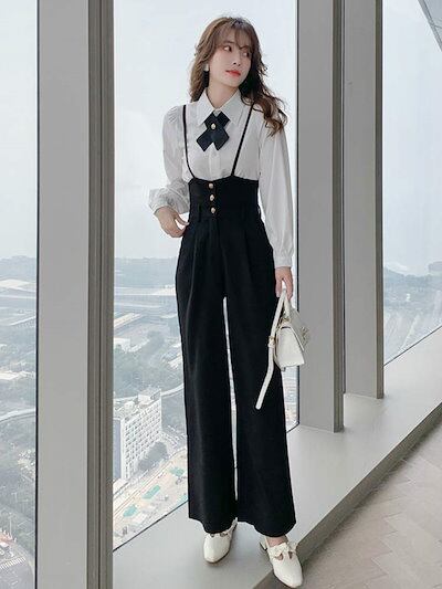 レディース オールインワン 2点セット アンクルパンツ 半袖 ボトムス オーバーオール サロペット エレガント きれいめ カジュアル 可愛い フェミニン おしゃれ お出かけ デイリー ブラック