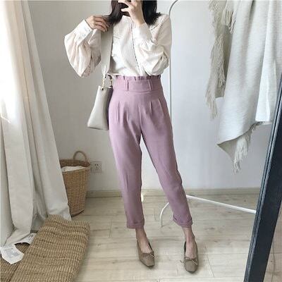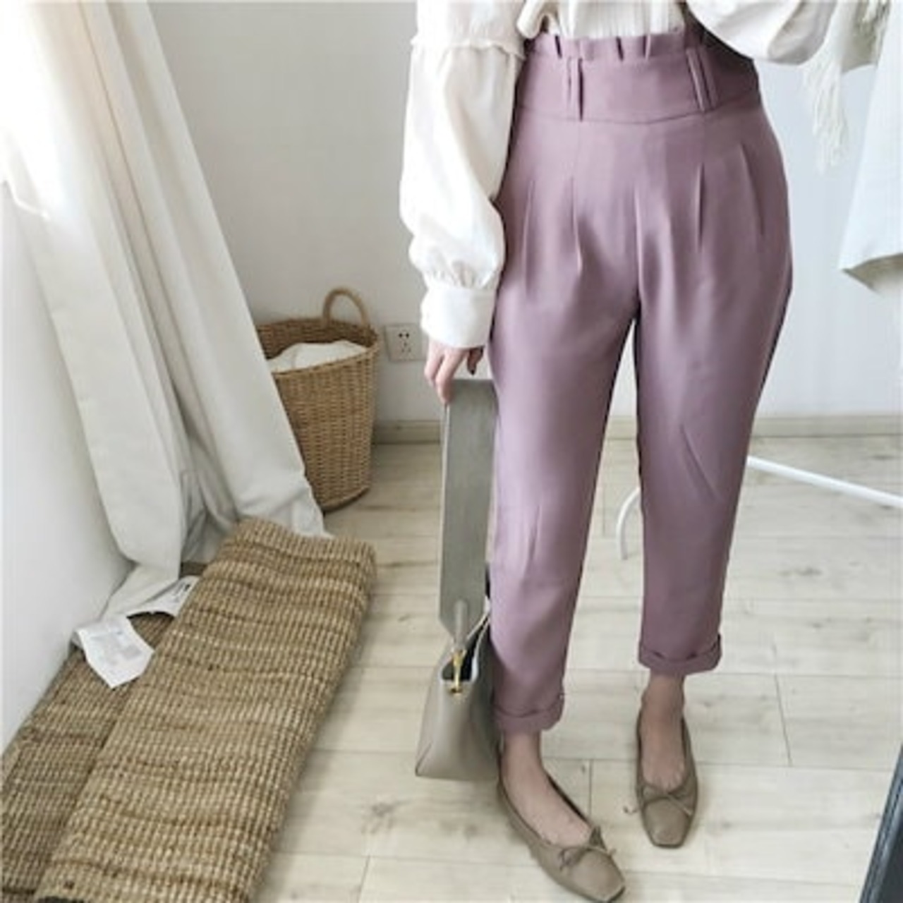 レディース クロップド 半端丈 ハイウエスト アンクルパンツ ボトムス カジュアル 可愛い フェミニン きれいめ エレガント おしゃれ お出かけ オフィス デイリー ピンク S M L サイズ