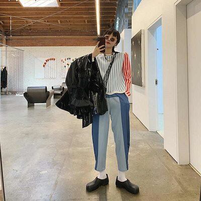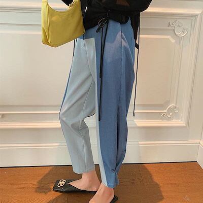 レディース クロップドパンツ 切り替えしデザイン アンクル丈 カジュアルパンツ ハイウエスト ボトムス カジュアル 可愛い 休日コーデ 学生 おしゃれ お出かけ デイリー ブルー XS S M L 小