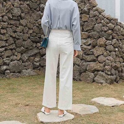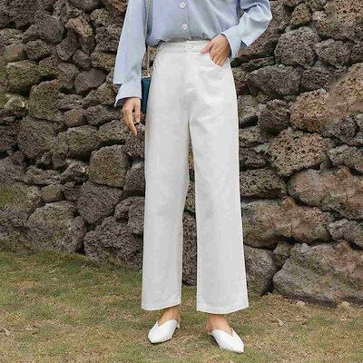 レディース ストレートパンツ ハイウエスト アンクルパンツ クロップド ボトムス カジュアル 可愛い フェミニン きれいめ エレガント おしゃれ お出かけ オフィス デイリー ブラック ホワイ