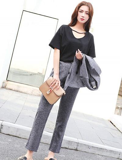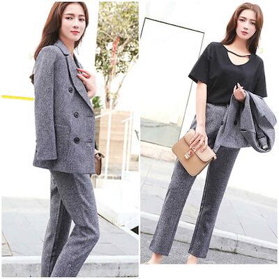 レディース セットアップ パンツスーツ 長袖 ダブル ジャケット アンクル丈 パンツ 無地 春秋 カジュアル 大人可愛い エレガント フェミニン オフィス 入学式 卒業式 お出かけ デート グレー