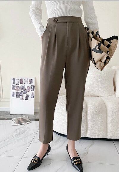 レディース ボトムス アンクル丈 スラックス ロング パンツ 無地 秋冬 カジュアル 大人可愛い シンプル ビジネス オフィス きれいめ きちんと感 お出かけ デート デイリー ブラウン グレー