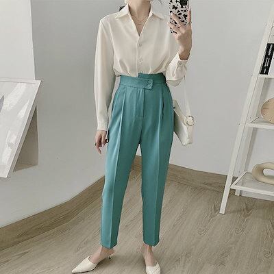 レディース ボトムス 無地 アンクル丈 センタープレス テーパードパンツ 春夏 カジュアル 大人可愛い 爽やか きれいめ エレガント オフィス ビジネス お出かけ きちんと感 デート デイリー
