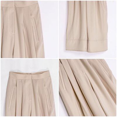 レディース ワイドレッグパンツ アンクルパンツ ハイウエスト 秋 冬 ボトムス カジュアル 可愛い フェミニン きれいめ エレガント おしゃれ お出かけ オフィス デイリー ベージュ XS S M 小
