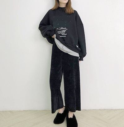 レディース ワイドレッグパンツ アンクル丈 クロップド 半端丈 ハイウエスト 秋 冬 ボトムス カジュアル 可愛い フェミニン きれいめ エレガント おしゃれ お出かけ オフィス デイリー ベー