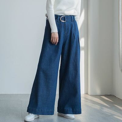 レディース ワイドレッグパンツ ツータック アンクル丈 ハイウエスト ボトムス カジュアル 可愛い フェミニン きれいめ エレガント おしゃれ お出かけ オフィス デイリー ネイビー S M L サ