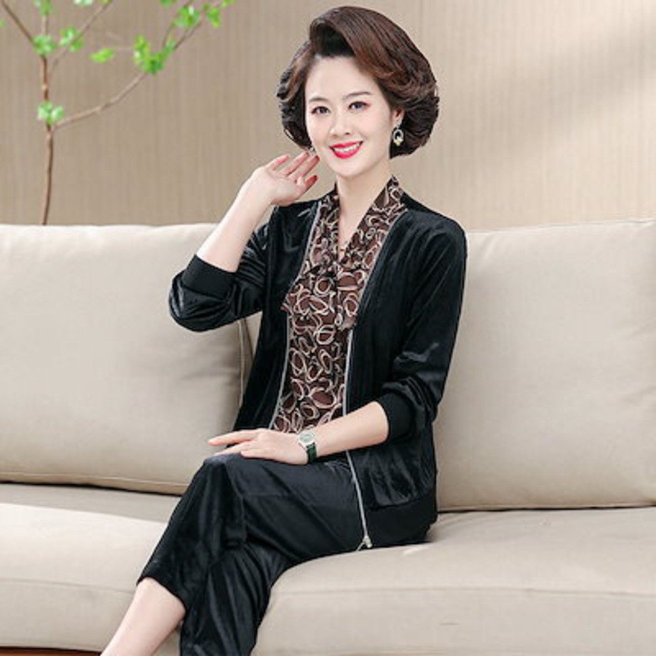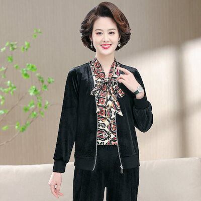 レディース 婦人服 3点セット ジャケット アンクルパンツ ブラウス ノーカラー ボウタイ ミセス シニア 40代 50代 60代 楕円 総柄 カジュアル 可愛い きれいめ 上品 エレガント オフィス