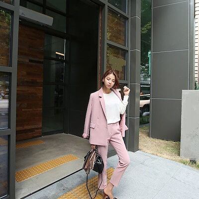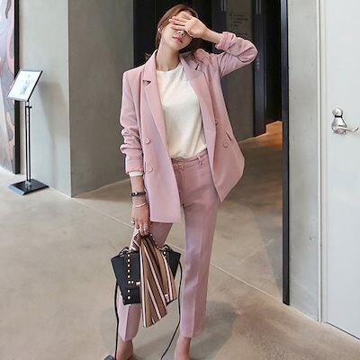 レディース 上下2点セット スーツ セットアップ テーラードジャケット アンクルパンツ カジュアル 可愛い フェミニン きれいめ 上品 エレガント おしゃれ お出かけ オフィス お呼ばれ ピンク