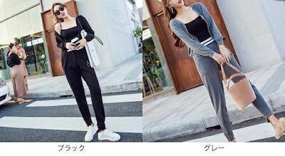 レディース 上下セット パーカー + アンクル丈 パンツ カジュアル スポーティー リラクシー 運動 おしゃれ お出かけ セットアップ グレー ブラック S M L XL サイズ