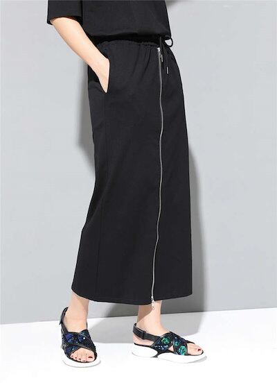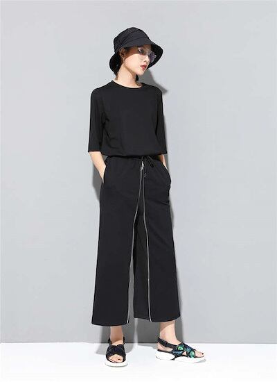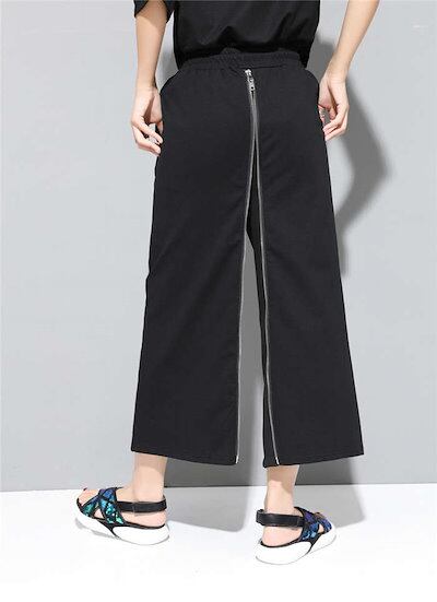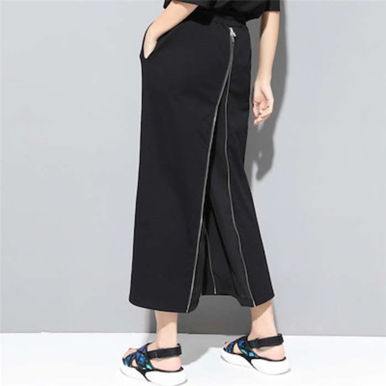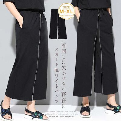 2way パンツ レディース スカート風 デザイン袴パンツ アンクル丈 九分丈 モード系 前後ファスナー デザインパンツ ボトムス 黒 ウエストゴムファッション 大きいサイズ ウエストゴム ファッショ