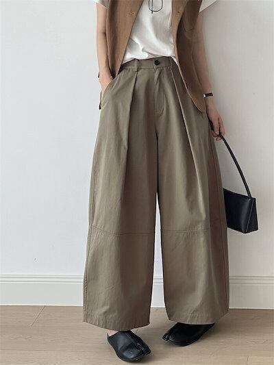 ワイド パンツ レディース コットンパンツ バルーンパンツ アンクル サルエルパンツ 綿 イージーパンツ タックパンツ 体型カバー ボトムス 通気性 ゆったり 楽ちん 高見え 上品 ズボン リラックス
