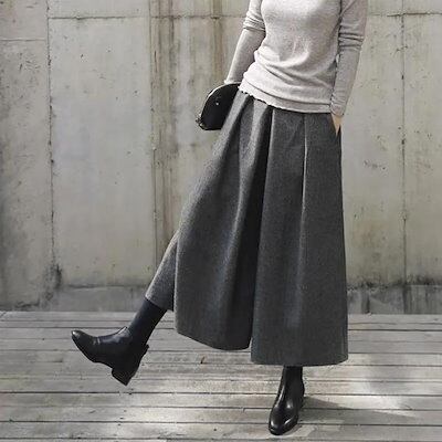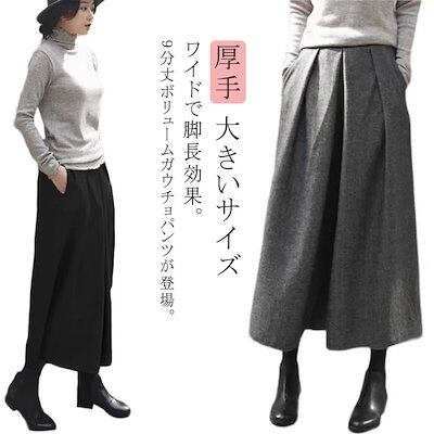 ワイドパンツ ガウチョパンツ レディース 秋冬 パンツ ラシャパンツ 厚手 冬 暖かい スカーチョ アンクルパンツ 九分丈 ロング丈 ワイド ゆったり 大きいサイズ ボトムス Aライン ズボン 体型カ