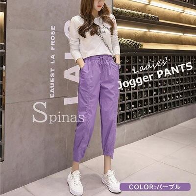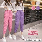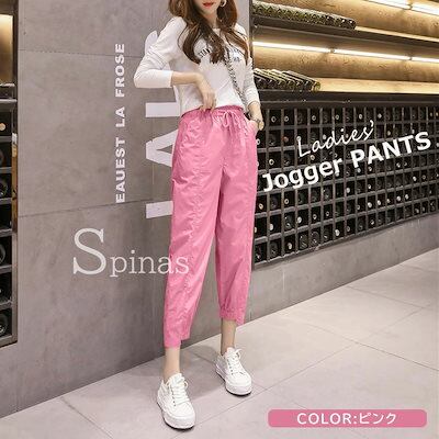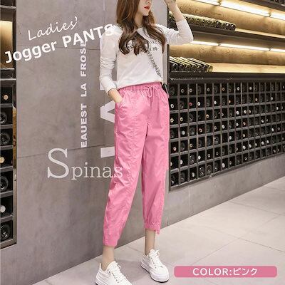 動きやすいシルエットのジョガーパンツ パンツ ジョガーパンツ レディース カラーパンツ アンクル丈 ストレート ボトムス キャンディーカラー ドローストリング 全5色
