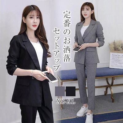 セットアップ 2点セット パンツスーツ レディース スーツ 上下セット フォーマル アンクルパンツ パンツ ジャケット パンツドレス 長袖 通勤 OL 20代 30代 40代 ビジネス オフィス 入学