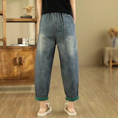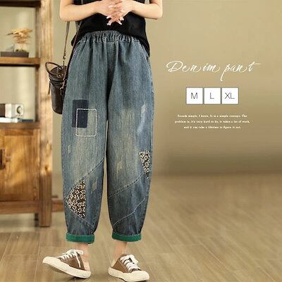 デニムパンツ レディース ジーパン サルエル ワイドパンツ サルエルパンツ ジーンズ デニム パンツ アンクル丈 カジュアル パンツ ボトムス ゆったり ウエストゴム 楽チン 刺繍 楽チン おしゃれ