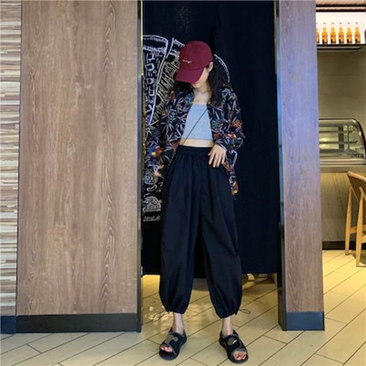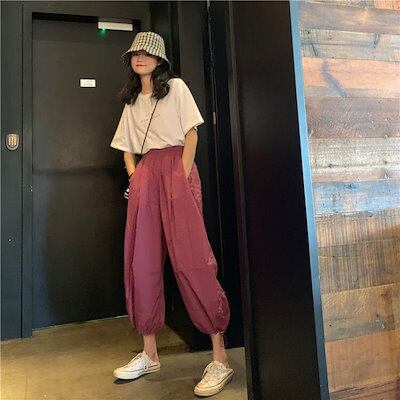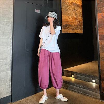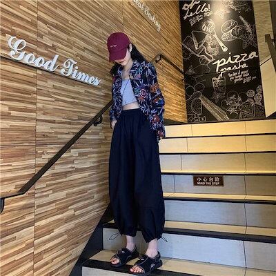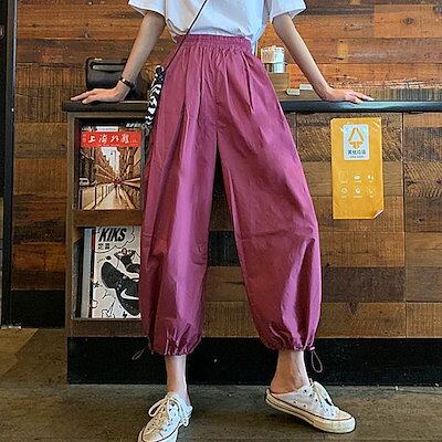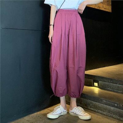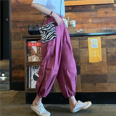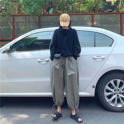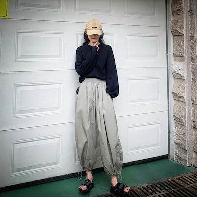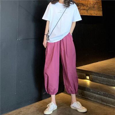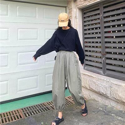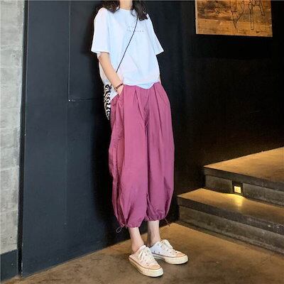 3色 パンツ レディース ワイドパンツ クロップドパンツ アンクル丈 7分丈 裾ゴム 裾絞り コードストッパー コードロック ギャザー おしゃれ かわいい ボーイッシュ ジェンダーレス ストリート ス