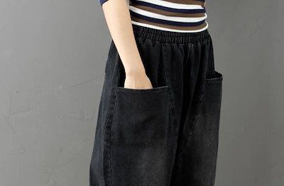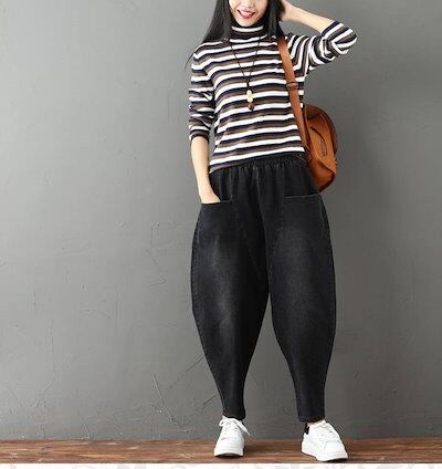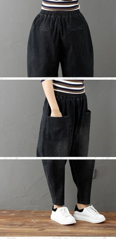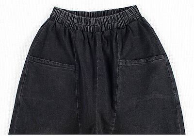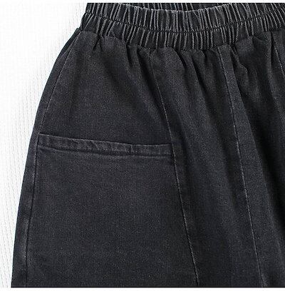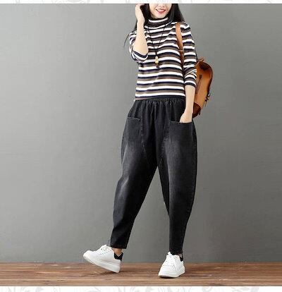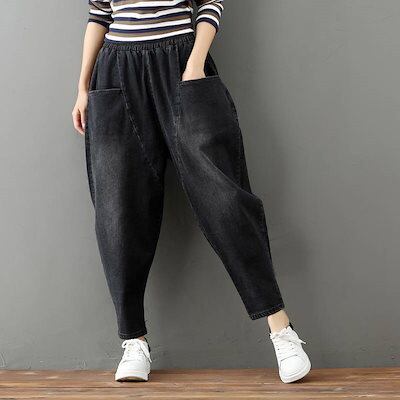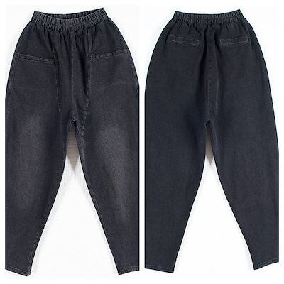 デニムパンツ レディース ジーンズ ジーパン サルエル 黒 無地 デニム 大きいサイズ xl 2xl 3xl 体型カバー ハーレムパンツ ゆったり 楽ちん パンツ アンクル丈 ウエストゴム おしゃれ