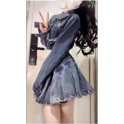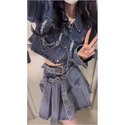 デニムスーツワンピース 2025春夏新作カレッジスタイルファッションデニムスーツ女性デザインジャケットトッププリーツスカート半身スカート2点セット