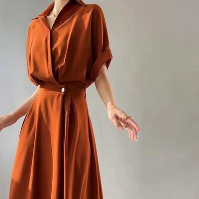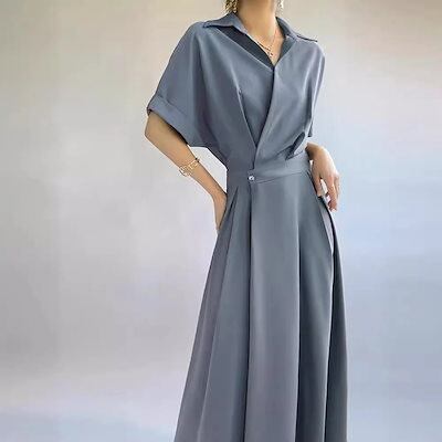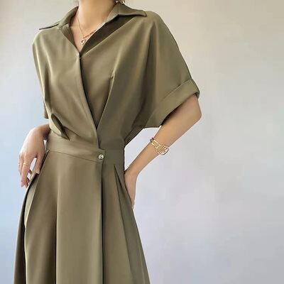 シャツワンピース新作女性春通勤気質ロングスカート