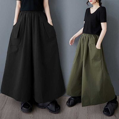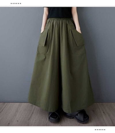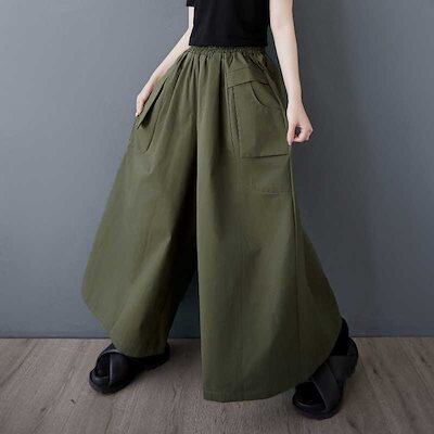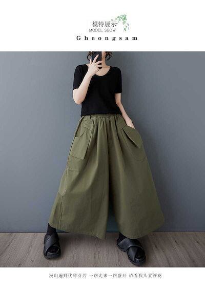 「ファットガール」 夏 立体ポケット ゴムウエスト ワイドパンツ パンツスカート 大きいサイズ 体型カバー レディース メガ割