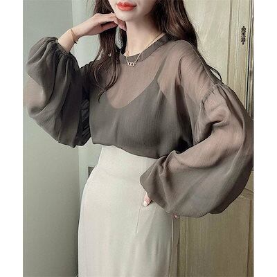 Tシャツ 韓国 2025新作 今年も人気!シフォン シャツVネック 大きいサイズ 着やせ 気質カットソー シフォンブラウス おしゃれ 長袖 シャツ 高級感 長袖 ストレッチ シャツブラウ