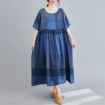 N【急速発送】【超人気好評】春夏 ゆったり 体型カバー 日系 レディース ワンピース 快適 半袖 ロングスカート Aラインワンピース 28