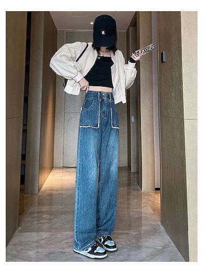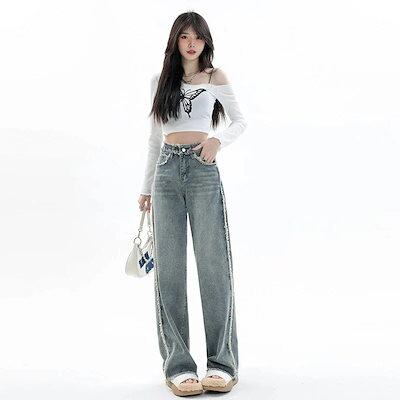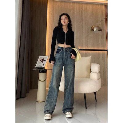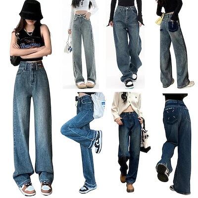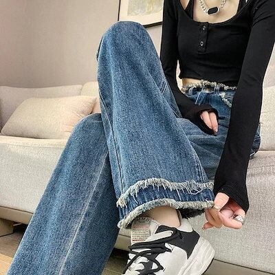 【短/長2タイプ】人気 デニムパンツ レディース ゆったり ワイド ハイウエスト フレア ダメージ 大きいサイズ レディースロングパンツ ストレート ストレッチ スキニー ジーンズ け メガ割