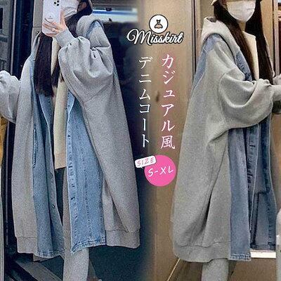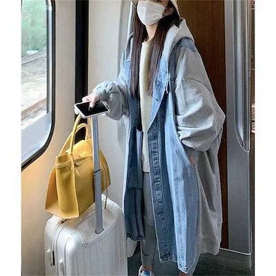 テーラードジャケット デニムコート レディース デニム コート スプリングコート 長袖 フード付き 無地 パーカー トップス ロング ジャケット 羽織り 春 秋 冬 前開き アウター ゆった アウター
