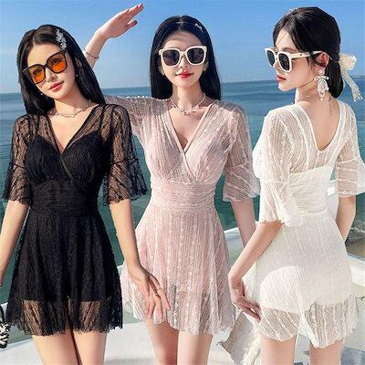 水着 レディース ワンピース 体型カバー ビーチウェア お洒落 無地 温泉 夏 かわいい おしゃれ ママ水着 ジム 女性用 ビキニ お湯用