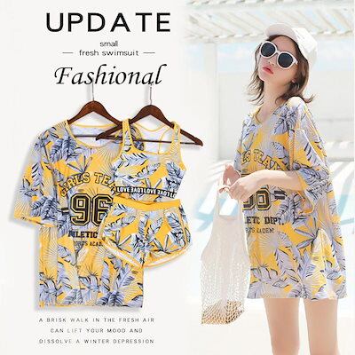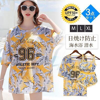 水着 レディース 3点セット セパレート 夏 日焼け防止 パッド付き 中学生 高校生 体型カバー UVカット 海水浴 潜水 ママ水着 温泉