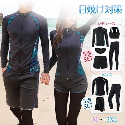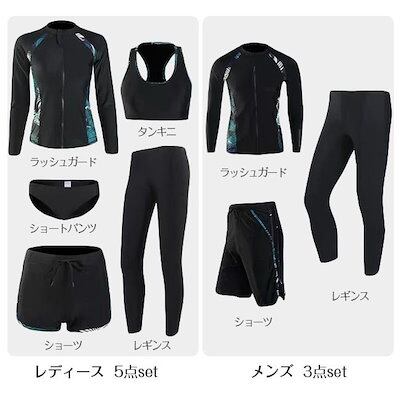 水着 レディース メンズ 5点/3点セット 日焼け対策 水陸両用 ラッシュガード タンキニ ショートパンツ レギンス 体型カバー