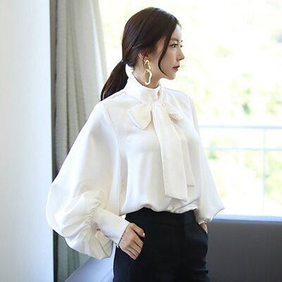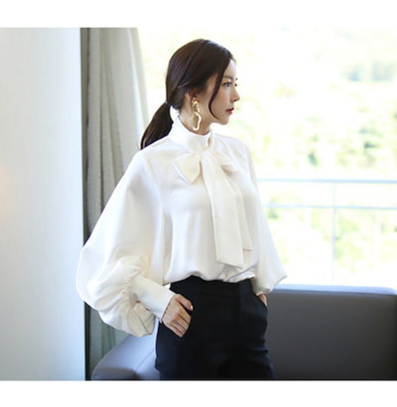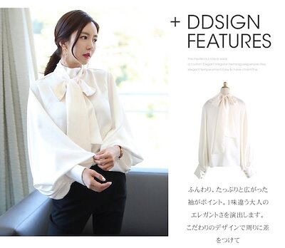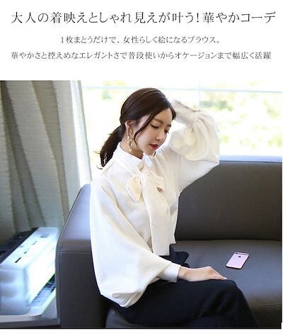ブラウス レディース シャツ リボンブラウス ボリューム袖 バススリーブバルーンスリーブ 長袖 おしゃれ 着痩せ
