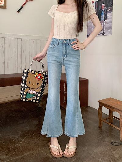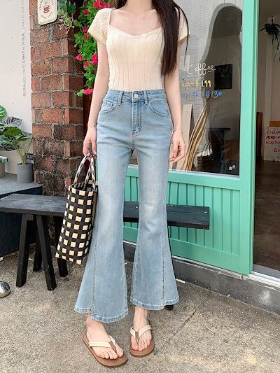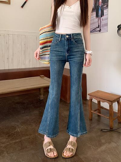 2025春夏 デニムパンツ ボトムス ハイウエスト ジーンズ K-POP ストリートファッション系モップ韓国風ファッション練習ジーンズ シルエット加工ゆったりレッグレディースカジュアル型サイズ衣装