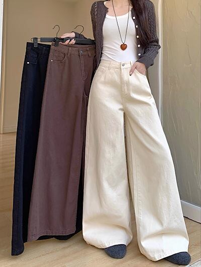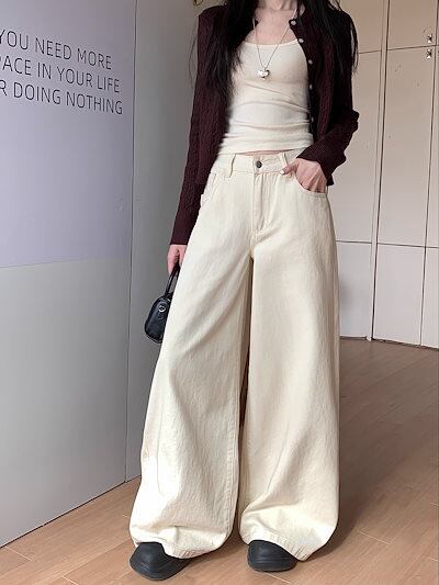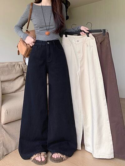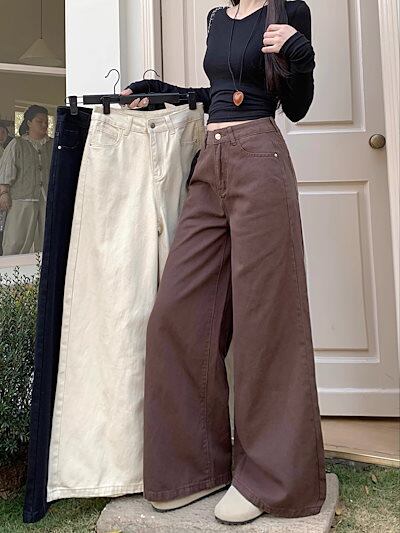 2025春夏 デニムパンツ ボトムス ハイウエスト ジーンズ K-POP ストリート系ファッション系モップ韓国風ファッションウェア練習ジーンズ シルエット加工ゆったりレッグレディースカジュアル型衣装