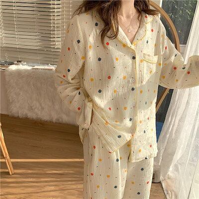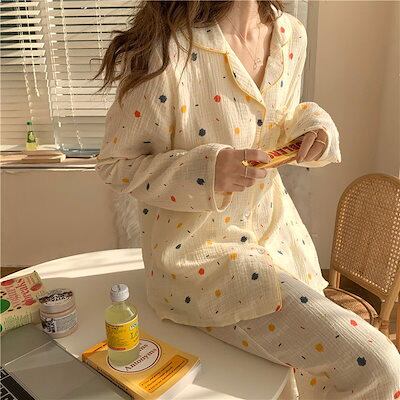 パジャマ ひんやりボトムス ルームウェア 韓国ファッション カラー パジャマ レディース 春 新作 学生 長袖 ロングズボン ホームウェア アウター セット 補正下着