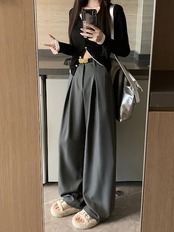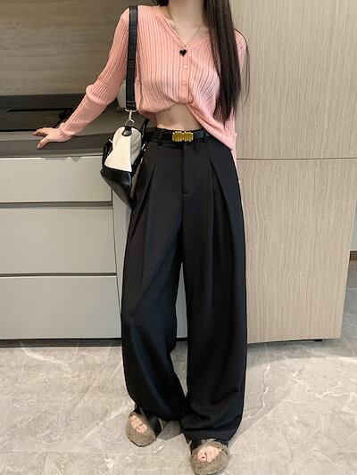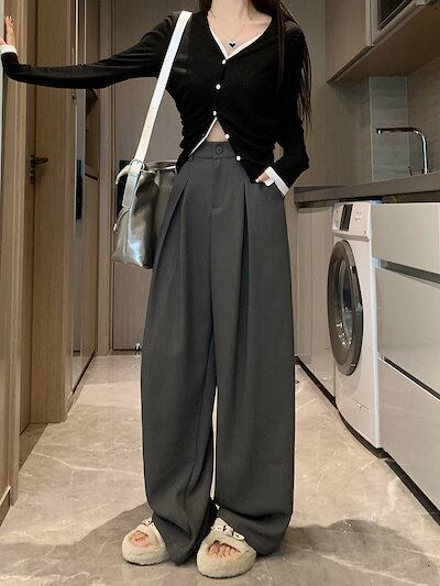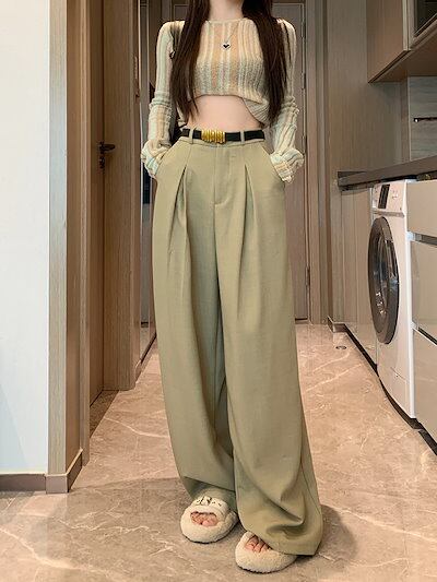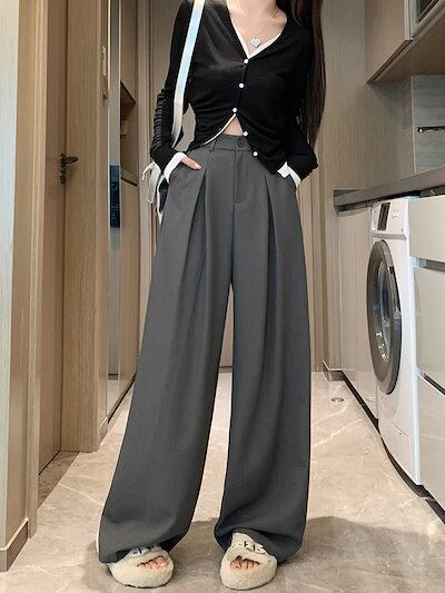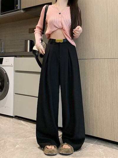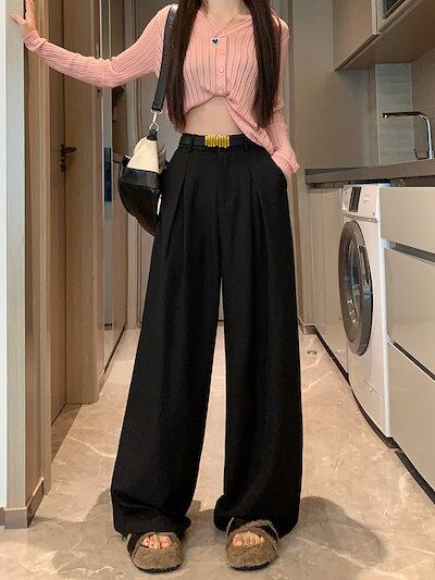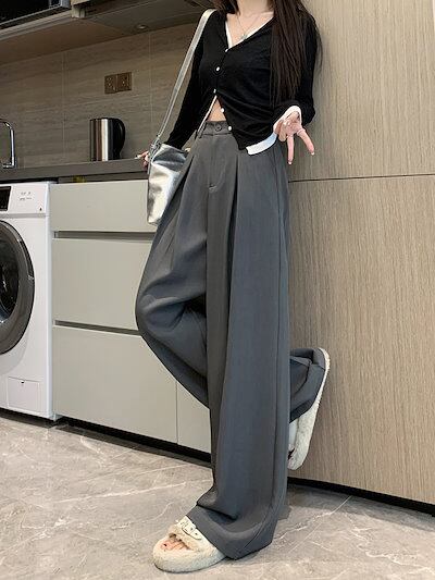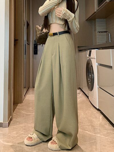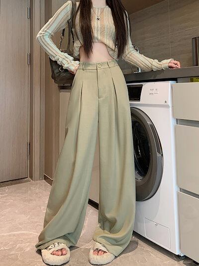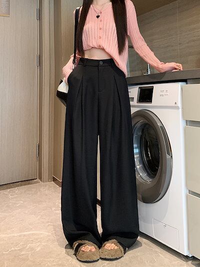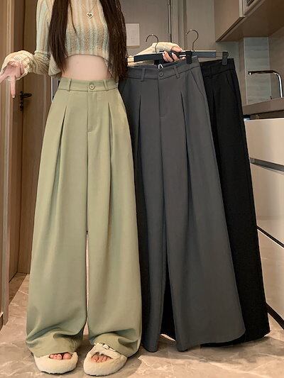 2025 春夏 パンツ ロング丈 ゆったり ハイウエスト 脚長効果 美脚効果 細見え 秋 カジュアル ストリート シンプル ファッション レディース お出かけ