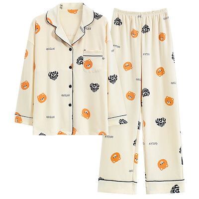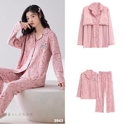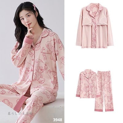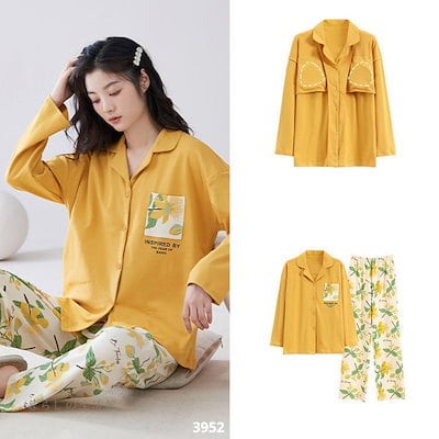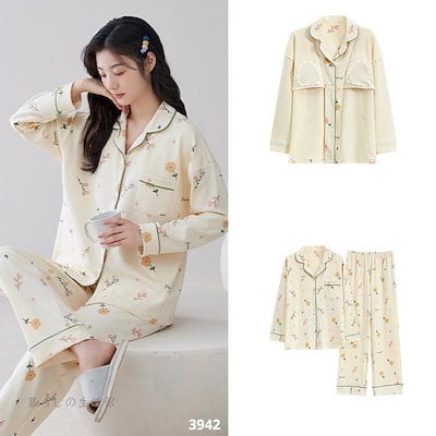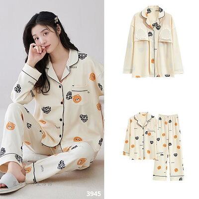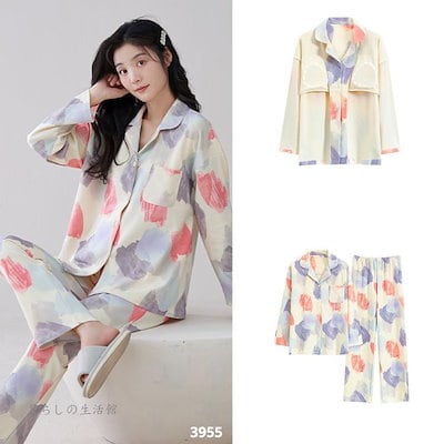 2025 春 夏 パジャマ ルームウェア セットアップ パッド付き 前開き 長袖 長ズボン 上下セット 部屋着 レディースファッション