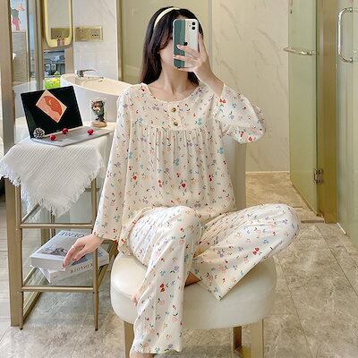 2025 春 夏 パジャマ ルームウェア セットアップ 長袖 ズボンセット 部屋着 レディースファッション